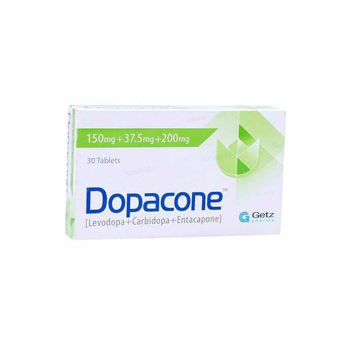 Dopacone 150mg 37.5mg 200mg Tablets are a medication used to treat Parkinson's disease. This combination drug contains three active ingredients - Carbidopa, Entacapone, and Levodopa, which work together to help manage the symptoms of this neurodegenerative disorder.