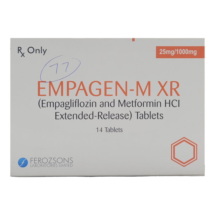 Empagen M Xr 25 1000mg is a medication used to treat type 2 diabetes. It combines two active ingredients, Empagliflozin and Metformin Hcl, to help control blood sugar levels in the body.