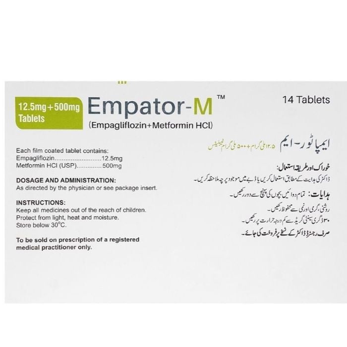 Empator M 12.5mg 500mg Tablets by Horizon is a combination medication containing two active ingredients, Empagliflozin and Metformin Hcl. It is used to treat type 2 diabetes by helping to control blood sugar levels.