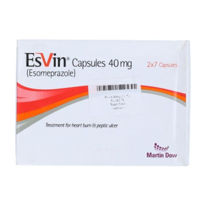 Esvin 40mg Capsules by Martin Dow are a highly effective medication used to treat conditions related to excessive stomach acid production. Each capsule contains Esomeprazole, a proton pump inhibitor that helps to reduce acid in the stomach and alleviate symptoms such as heartburn, acid reflux, and ulcers.
