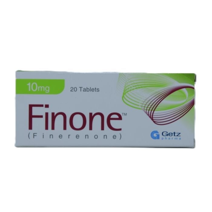Finone 10mg Tablets 20s are a medication containing the active ingredient finerenone, manufactured by Getz. It is used to treat a variety of conditions related to heart failure and chronic kidney disease.
