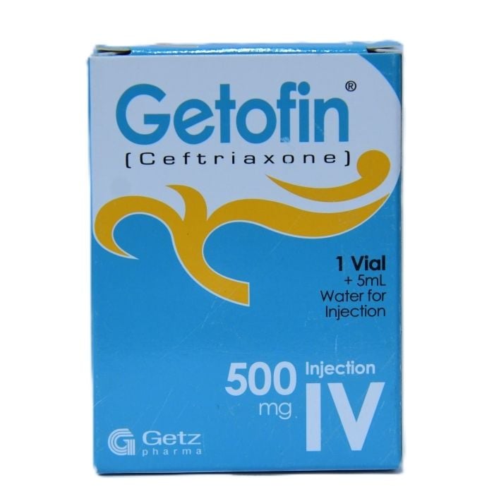 Getofin 500mg Inj Iv by Getz is a powerful antibiotic injection containing the active ingredient Ceftriaxone. It is used for treating a wide variety of bacterial infections in both adults and children.