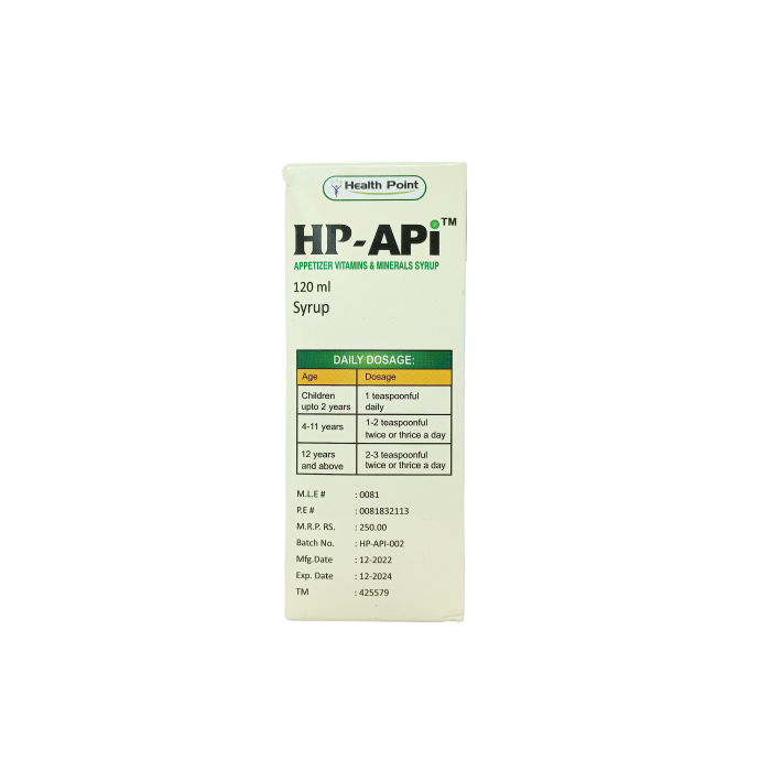 Hp Api Syp 120ml is a high-quality dietary supplement manufactured by Orbit Naturals (Pvt) Ltd. It contains essential vitamins that are crucial for maintaining overall health and well-being. This product is designed to supplement your daily diet with key nutrients that may be lacking in your regular meals.
