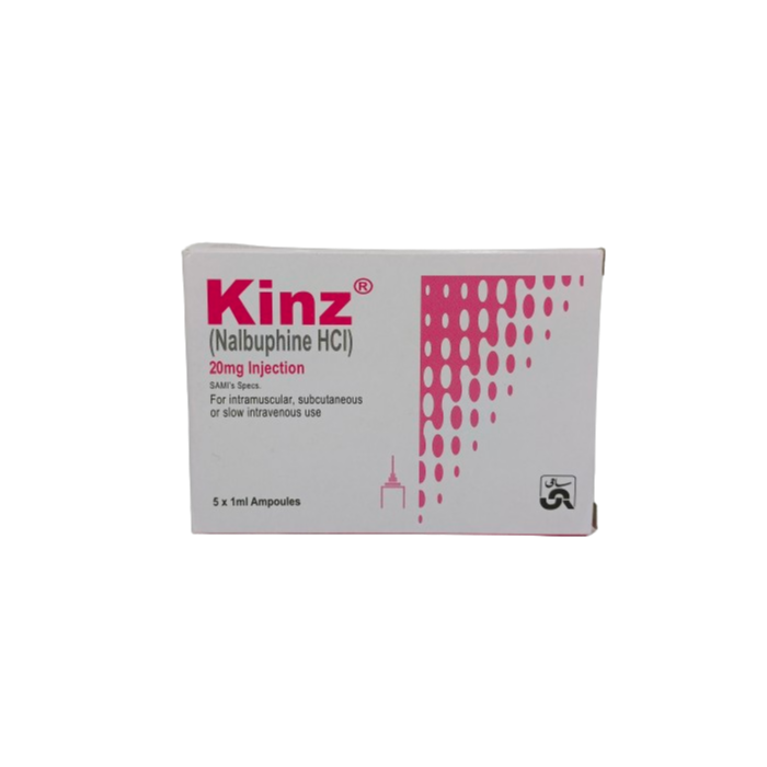 Kinz 20mg Inj by Sami is a powerful injectable medication containing the active ingredient Nalbuphine. This medication is commonly used for the management of moderate to severe pain in various medical settings.