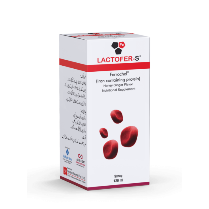 Iron is a key component in the production of hemoglobin, a protein in red blood cells that carries oxygen from the lungs to the rest of the body. Lactofer S 120ml Syp provides a concentrated source of iron that helps replenish depleted iron stores in the body, promoting healthy red blood cell formation and optimal oxygen transport.