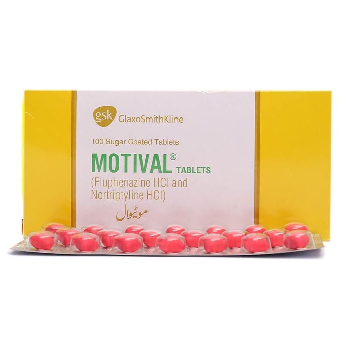 Motival Tablets are a combination medication used to treat various mental health conditions such as depression, anxiety, and schizophrenia. It contains two active ingredients, Fluphenazine Hcl and Nortriptyline, which work together to help balance chemicals in the brain that may be causing these conditions.
