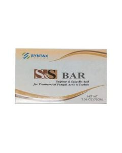 The S&S Bar 75gm by Syntax is a powerful skincare product formulated with salicylic acid and sulphur to target acne-prone skin. It is designed to cleanse the skin deeply while combating acne-causing bacteria to promote clear and healthy skin.