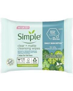 Simple Cleansing Wipes 20s Clear Matte are infused with gentle yet effective cleansing ingredients that work to dissolve makeup, dirt, and impurities from the skin's surface. The mattifying properties help to control excess oil and shine, leaving your skin looking fresh and matte. The non-drying formula ensures that your skin remains hydrated and comfortable after use.