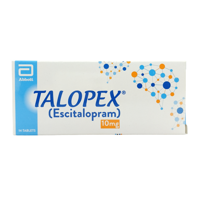 Talopex 10mg Tablets are a medication used to treat depression and anxiety disorders. The active ingredient, Escitalopram, works by increasing the levels of serotonin in the brain, which helps improve mood, sleep, appetite, and energy levels.