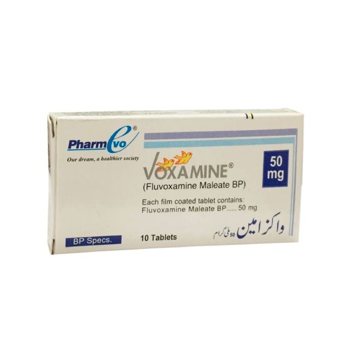 Voxamine 50mg Tablets by Pharmevo are a medication used to treat various mental health conditions such as depression, obsessive-compulsive disorder (OCD), and social anxiety disorder. These tablets contain the active ingredient Fluvoxamine, Meleate, which helps to balance chemicals in the brain that may be causing symptoms of these conditions.
