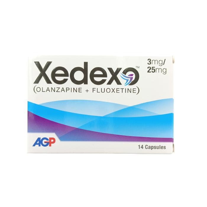 Xedexo 3mg 25mg Capsules are a combination medication containing fluoxetine and olanzapine. This product is commonly used to treat bipolar disorder, depression associated with bipolar disorder, and treatment-resistant depression.